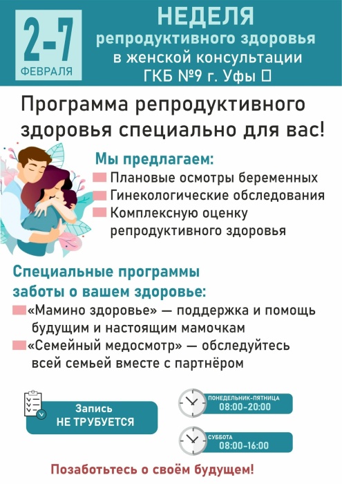 Со 2 по 7 февраля неделя репродуктивного здоровья в женской консультации ГКБ №9 г. Уфы