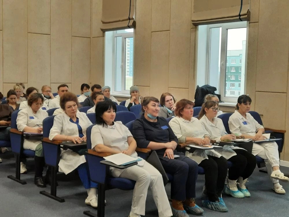 Нигматуллина Г.К. (главная медицинская сестра) представила доклад «Профилактика ИСМП в МО», поделившись важными рекомендациями и нормами СанПин 3.3686-21.