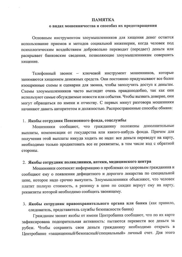 Памятка о видах мошенничества и способах их предотвращения