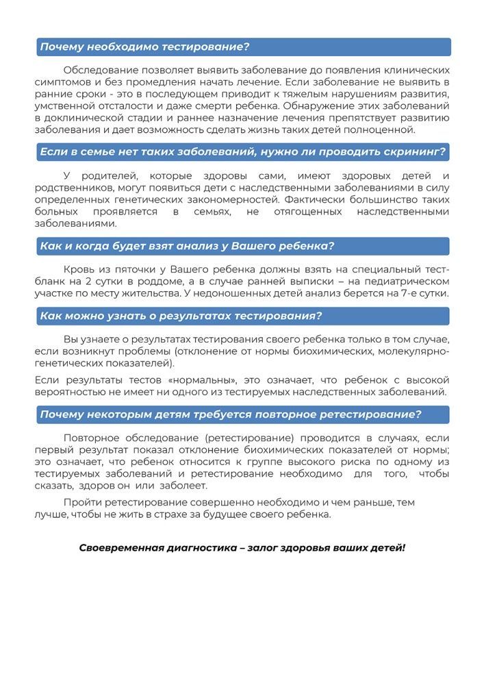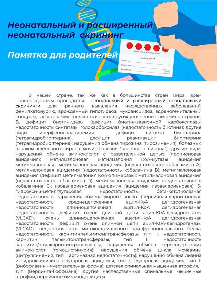 Неонатальный и расширенный неонатальный скрининг - памятка для родителей