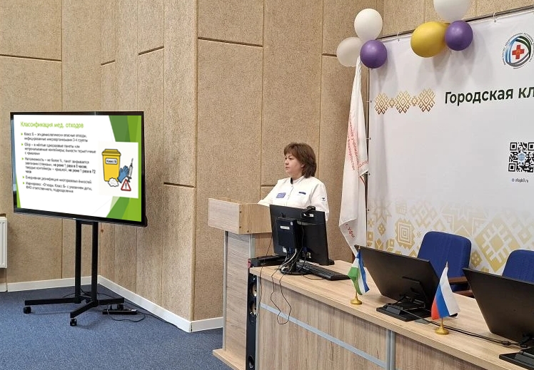 С содержательным докладом выступила старшая медицинская сестра поликлинического отделения №1 Юсупова М.М., которая подробно рассказала о нормативных требованиях, типичных ошибках и новых подходах к обращению с отходами в медицинских организациях. Участники активно задавали вопросы, делились опытом и обсуждали сложные случаи из практики.