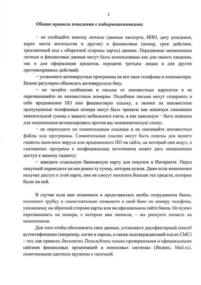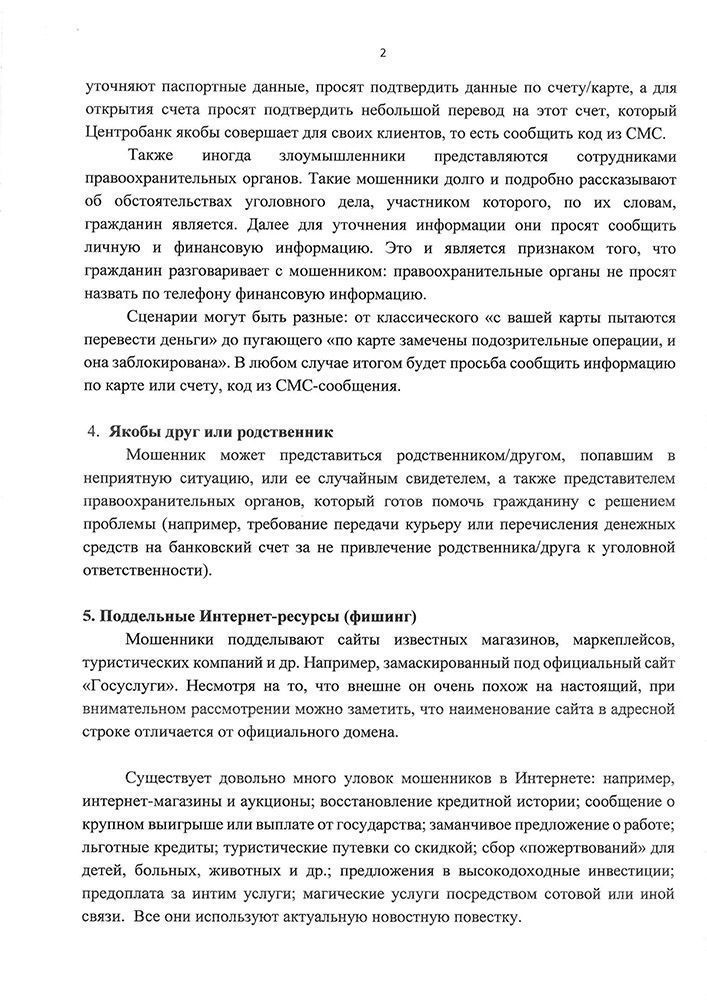 Памятка о видах мошенничества и способах их предотвращения