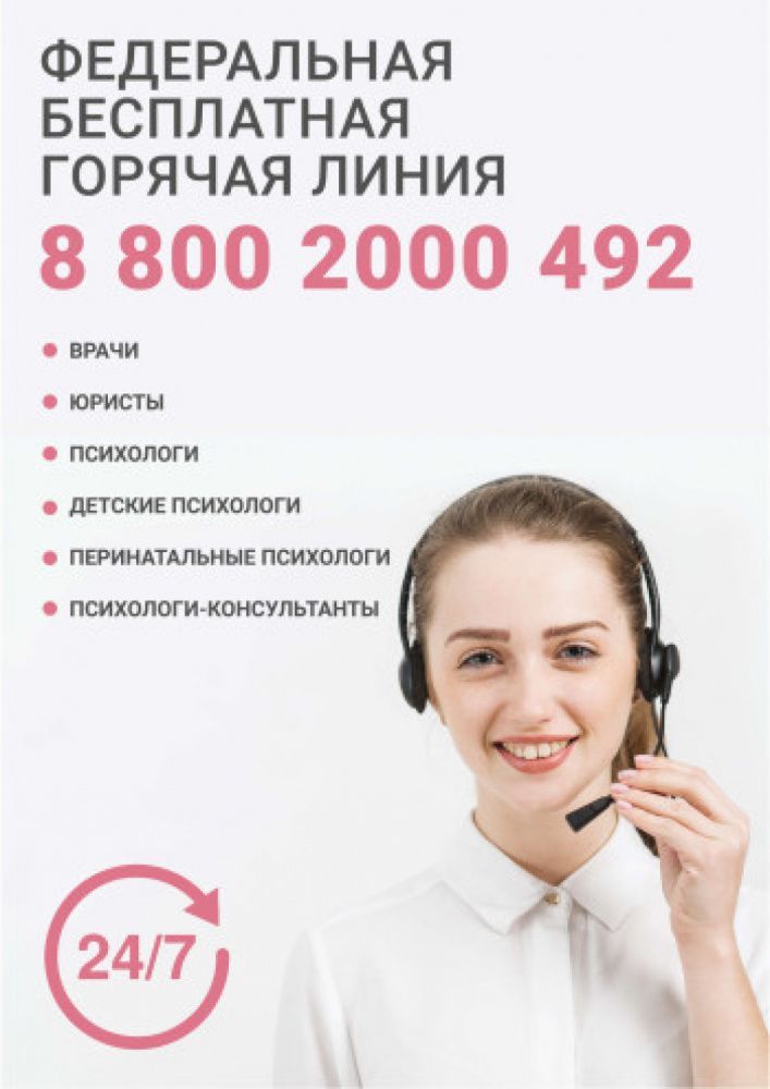 Консультации 24/7 по телефону 8 800 2000 492 «Просто позвоните, мы рядом». Анонимная Горячая линия существует с 2018 года с целью неотложной психологической помощи женщинам (или их близким) в ситуации репродуктивного выбора. Коммуникационную кампанию по профилактике абортов и повышению рождаемости в рамках национального проекта «Демография» реализует Автономная некоммерческая организация «Национальные приоритеты» (далее — АНО « Национальные приоритеты).